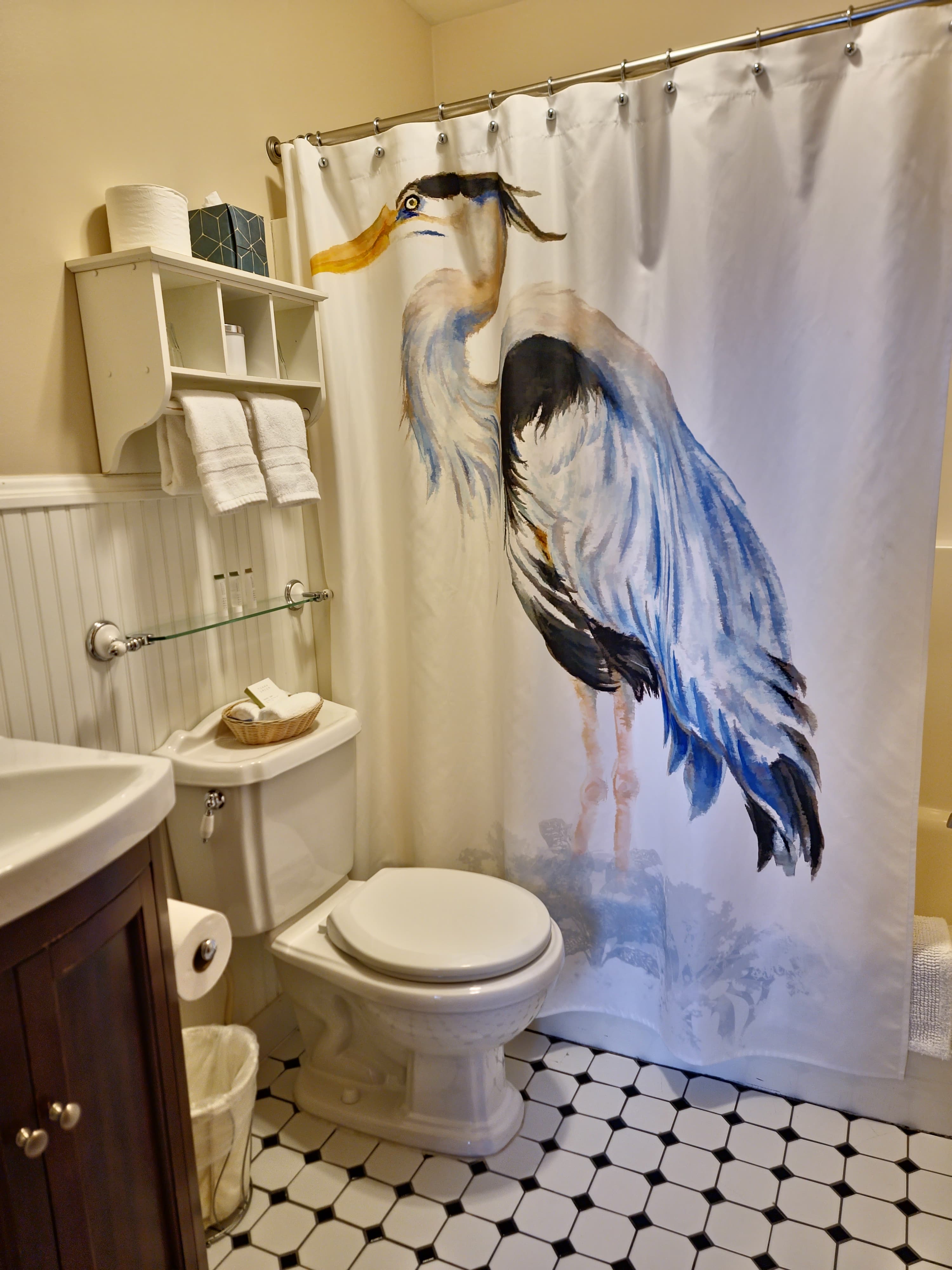 - Private bath in room with shower and tub